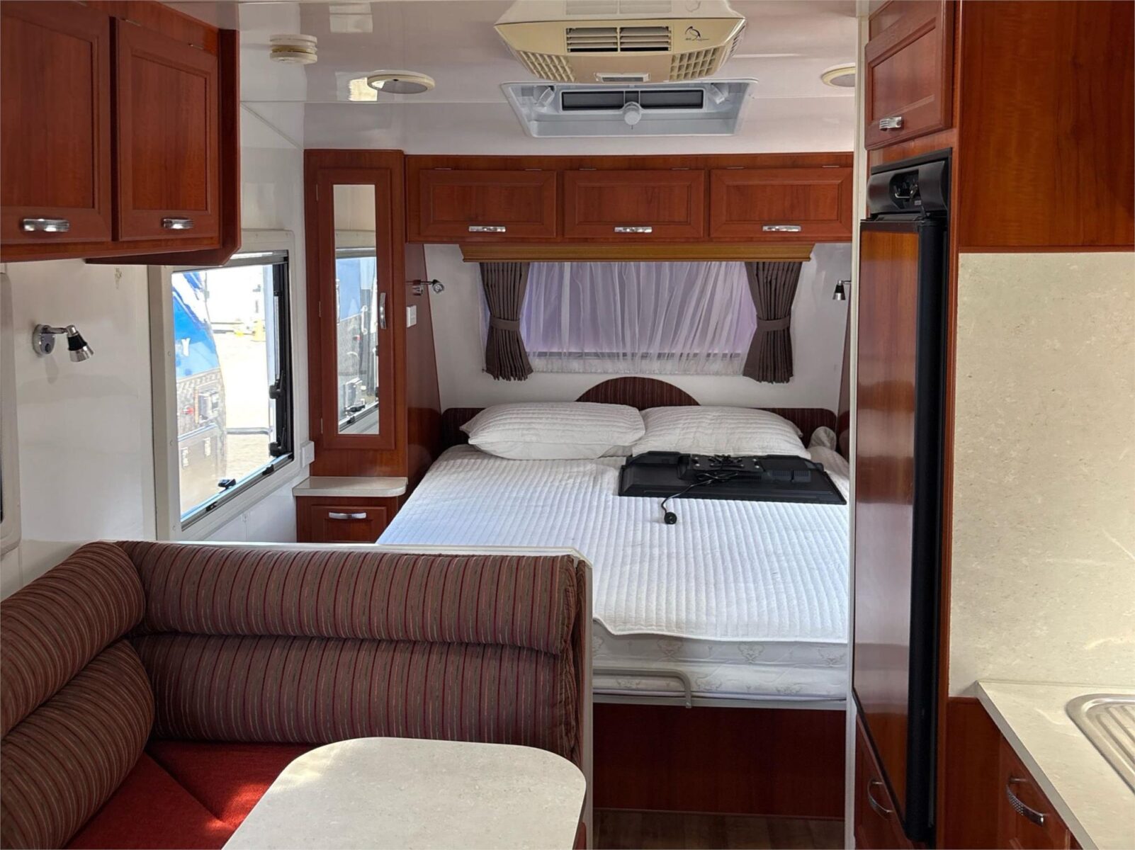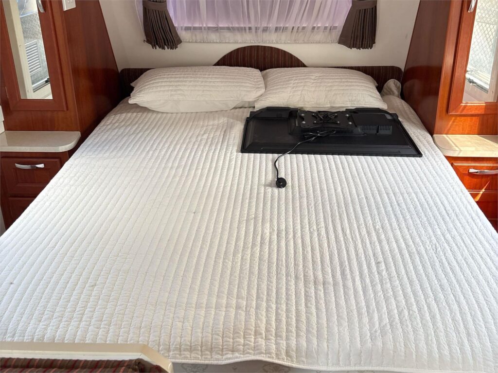 A well cared for 18ft 6″ caravan, shedded when not in use. Priced to sell at only $35,900-. Has a full rear ensuite with a washing machine. Has 2 house batteries that are run from a protable solar panel that is included.